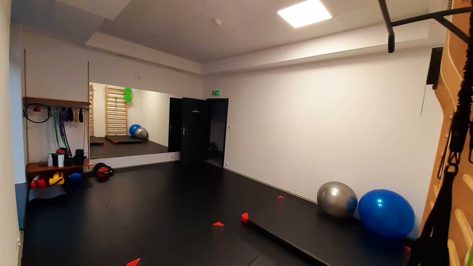 Serdecznie zapraszamy do naszej świetnie wyposażonej sali, na której wykonasz rozgrzewkę lub rozciąganie po treningu z pomocą taśm, rollerów, drabinek, piłek i wielu innych sprzętów.